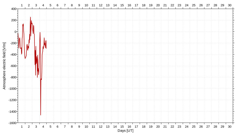 While electric field is observed with sampling rate 10Hz, the presented data are averaged by one hour time period.